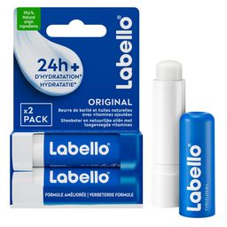 Le Labello® Original garde vos lèvres douces et hydratées pendant 24 heures*. Sa formule à base de beurre de karité et d'huiles naturelles enrichies en vitamines C & E est composée à 99,6 % d'ingrédients d'origine naturelle. Ultra nourrissant ce baume réparateur à la formule riche protègera vos lèvres du dessèchement et gardera vos lèvres lisses et souples toute la journée. Sa formule unique a une texture onctueuse qui fond instantanément sur vos lèvres et ne laisse aucun fini désagréable. Tolérance cutanée testée sous contrôle dermatologique. Il est idéal pour chouchouter vos lèvres toute la journée!