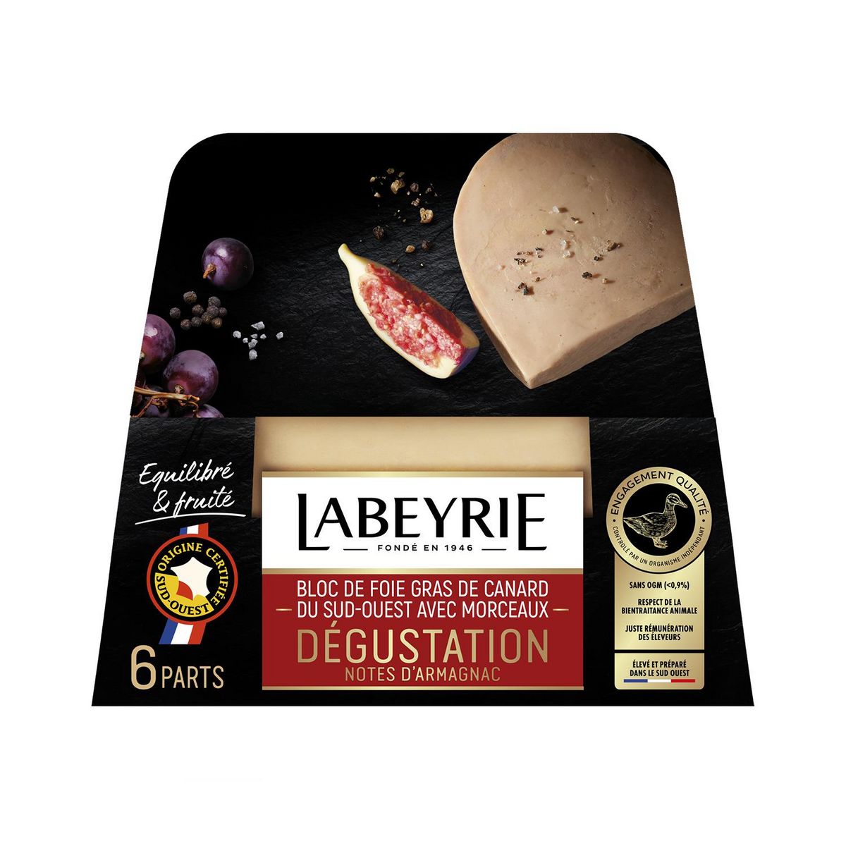 L’assaisonnement maison Labeyrie à la pointe d’Armagnac confère à notre Bloc de Foie Gras de canard avec morceaux Des notes équilibrées de fruits confits.Vous apprécierez sa texture fondante avec de beaux morceaux de Foie Gras.