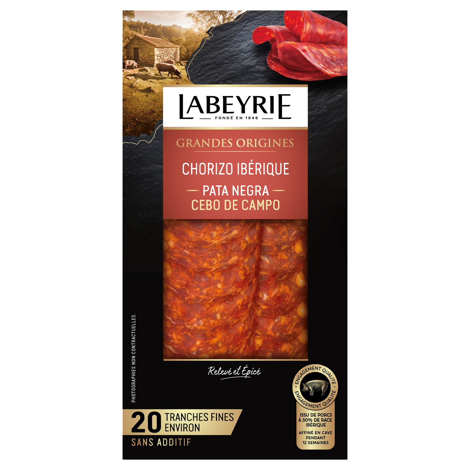 Etonnez vos invités avec de fines tranches de chorizo Pata Negra Labeyrie aux saveurs épicées et intenses, à la texture fondante et préparé selon la tradition Espagnole.