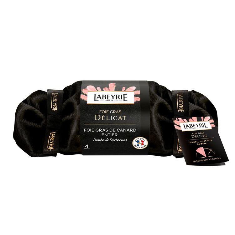 Foie gras de canard (origine France), Sauternes AOP (2%), sel, epices, sucre, poivre de Sarawak, Conservateur : E250.