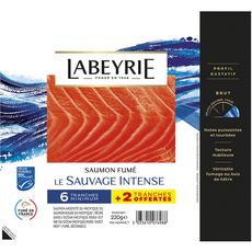 SAUMON SAUVAGE DU PACIFIQUE FUME 6 TRANCHES + 2 TRANCHES OFFERTES 180G+40G OFFERTS
