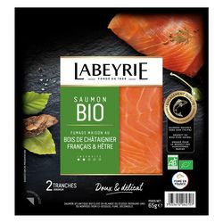 SAUMON ATLANTIQUE BIO FUME AU BOIS DE HETRE 2 TRANCHES 65 G