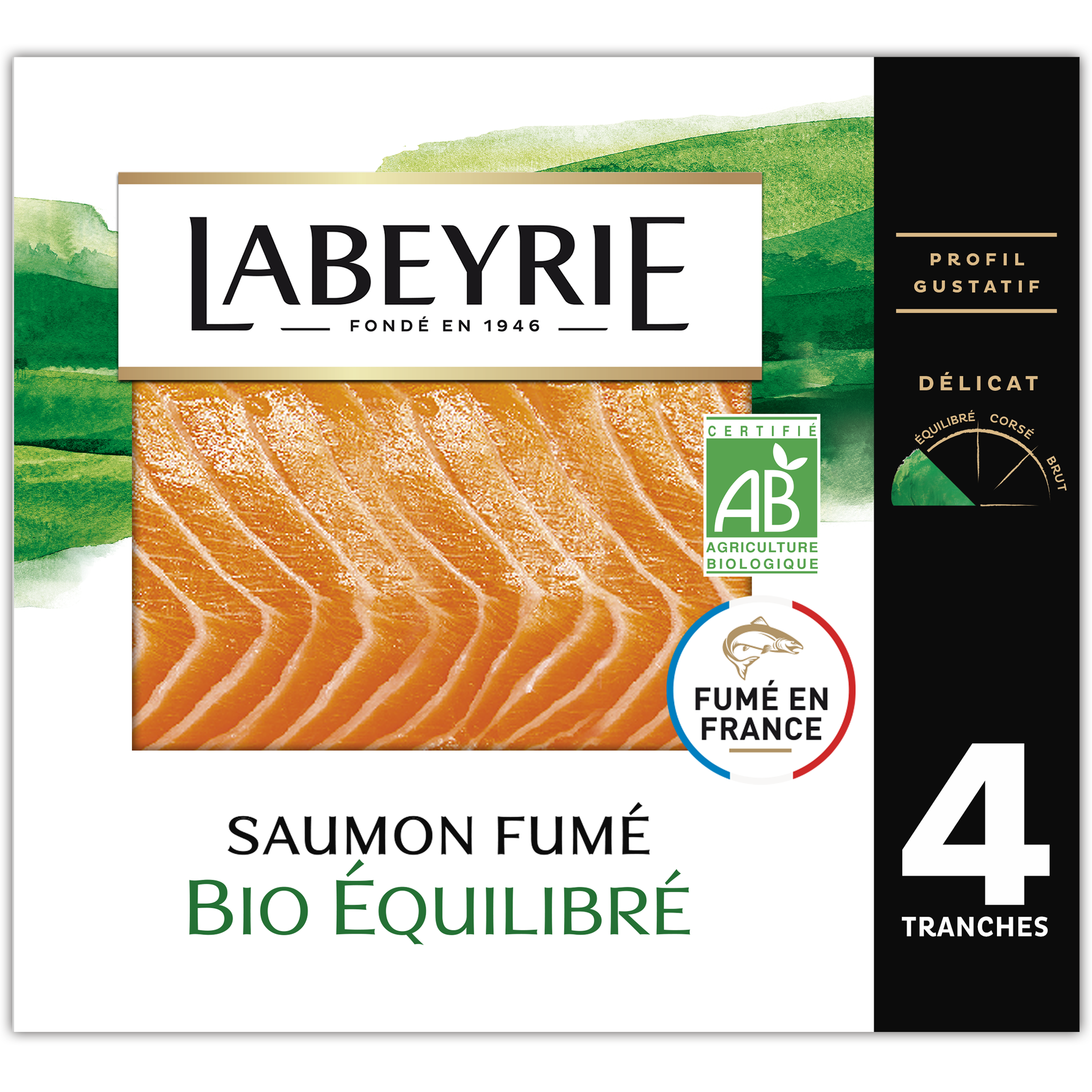 Découvrez un Saumon fumé issu de l'Agriculture Biologique, sélectionné parmi nos filières de production respectueuses, des animaux et des écosystèmes environnants. Appréciez les tranches fines et la texture ferme de ce saumon. SAUMON ATLANTIQUE BIO FUME 4 TRANCHES 120G;nl:BIO ATLANTISCHE ZALM