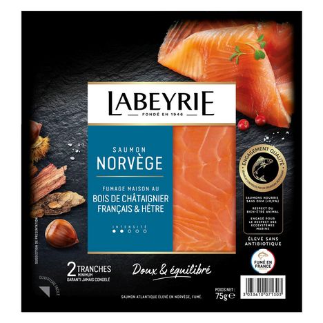 SAUMON ATLANTIQUE DE NORVEGE FUME 2 TRANCHES 75G