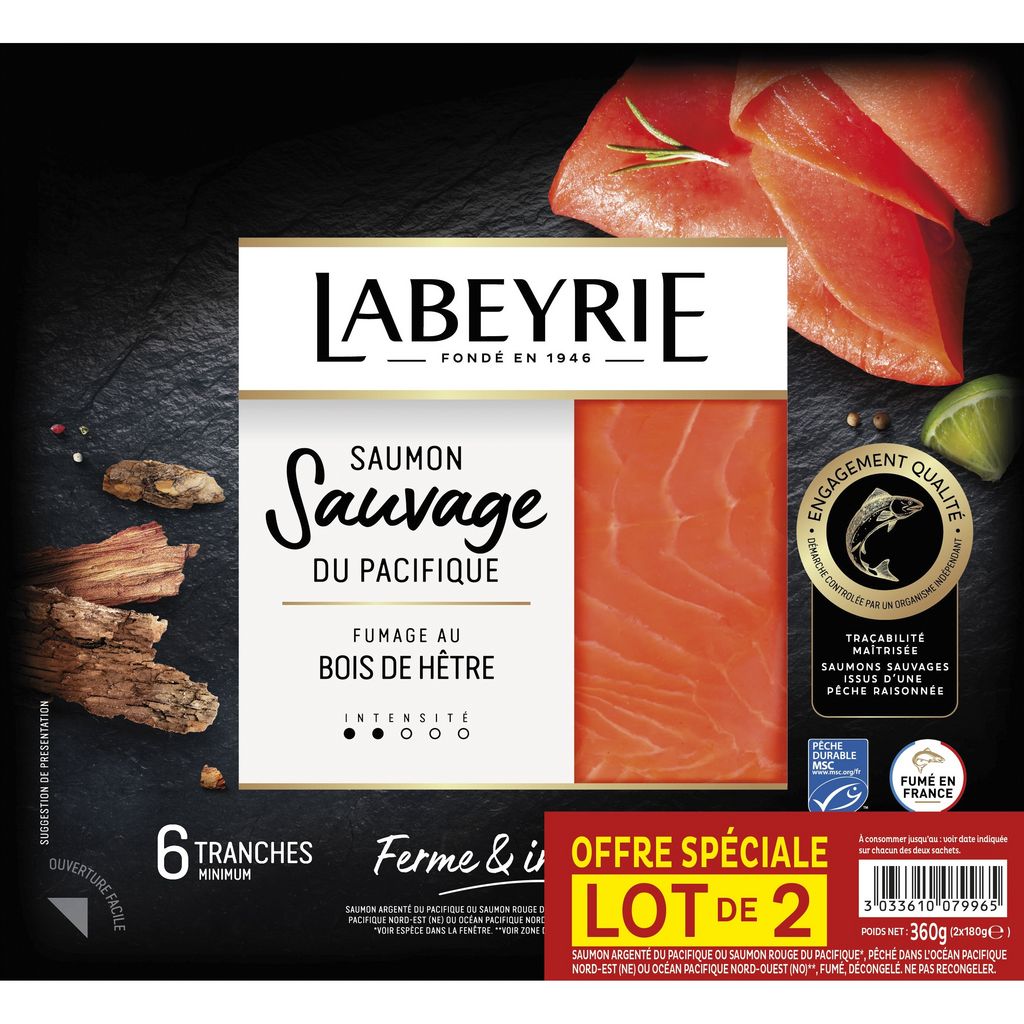 SAUMON SAUVAGE DU PACIFIQUE FUME AU BOIS DE HETRE 2x6 TRANCHES 2x180G