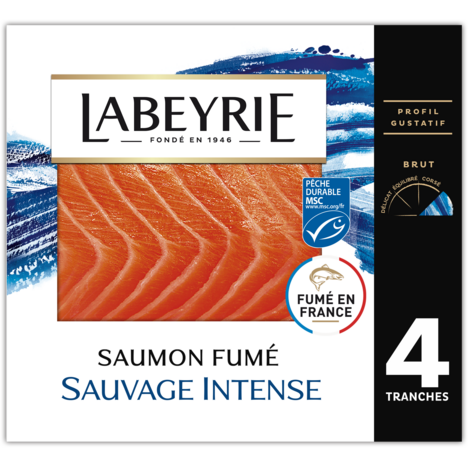 Soucieux de vous offrir le meilleur du Saumon Fume, Labeyrie vous garantie un saumon de qualite, rigoureusement selectionne et delicatement fume SAUMON FUME SAUVAGE DU PACIFIQUE 4 TRANCHES 120 G