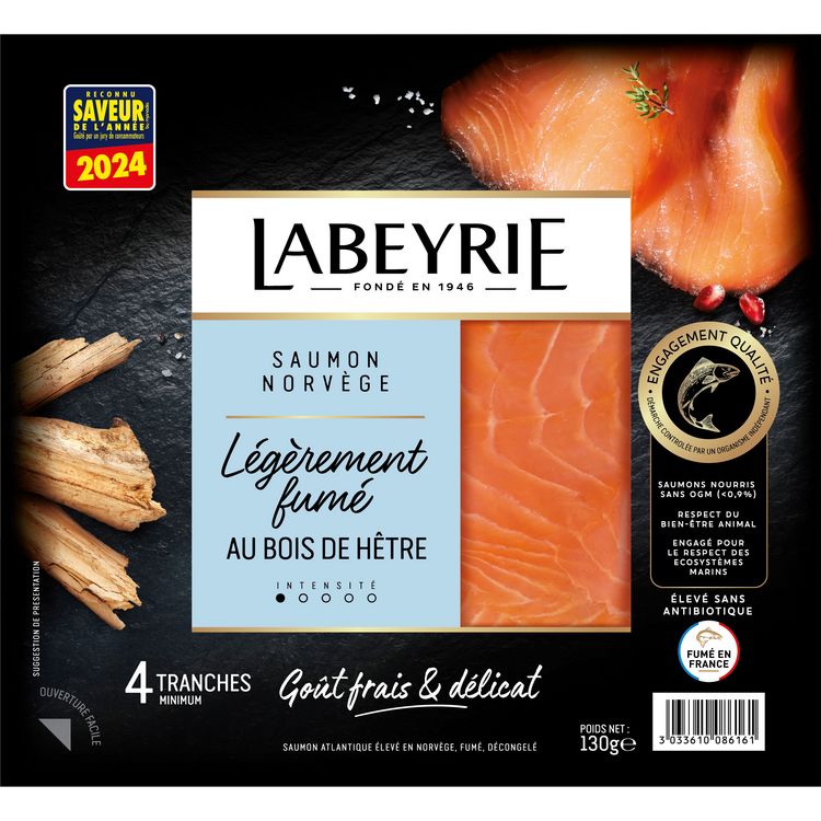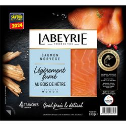 SAUMON ATLANTIQUE LEGEREMENT FUME DE NORVEGE 4 TRANCHES 130G DECONGELE