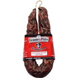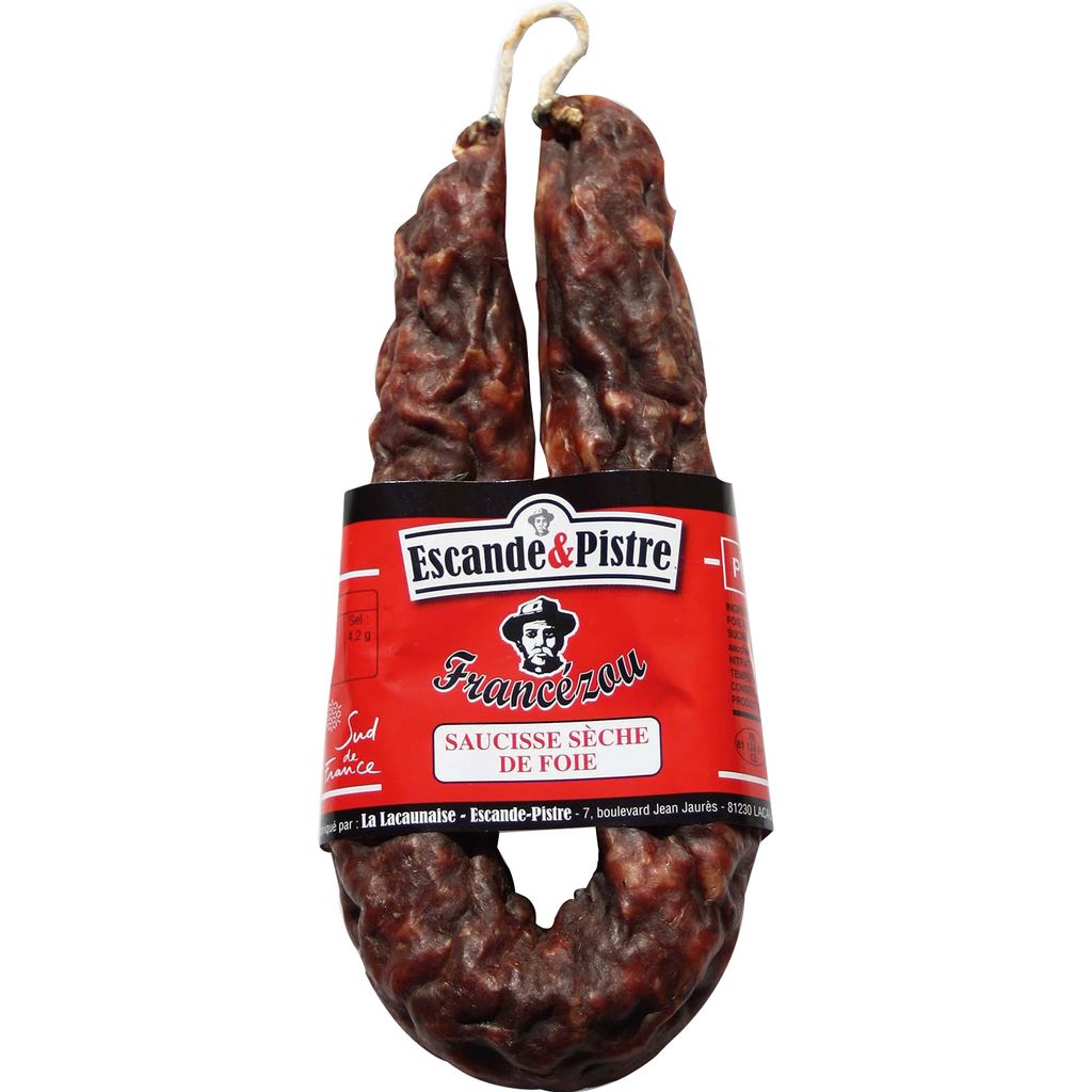 Viande de porc (158 g de viande mise en oeuvre pour 100g de produit fini), foie de porc (30% minimum), sel, sucres (LACTOSE, dextrose, saccharose), épices, conservateur: nitrate de potassium, ferment de maturation. Garanti sans colorant.