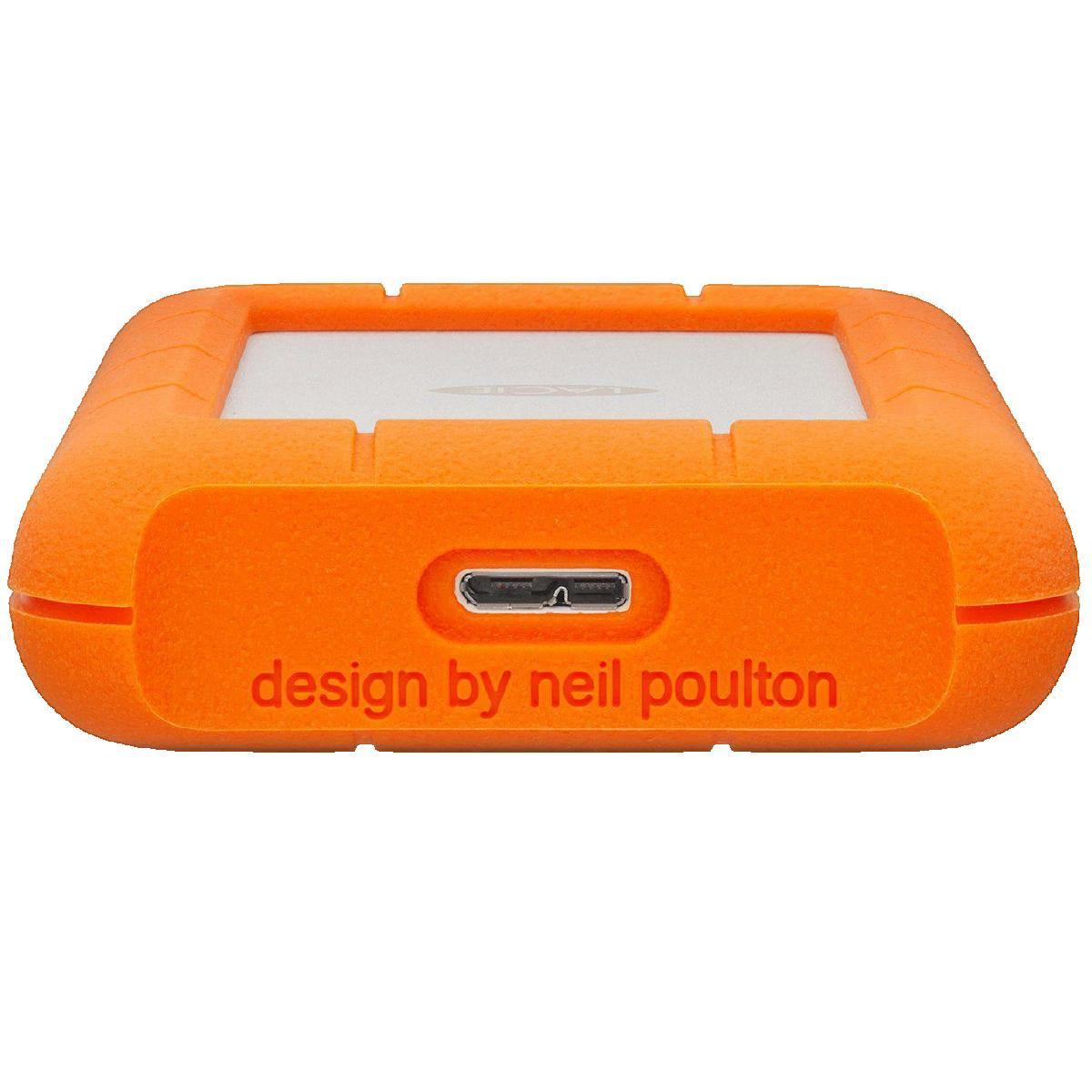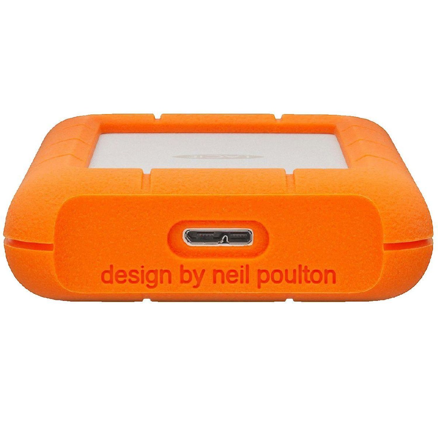 Le disque dur externe LaCie Rugged USB-C 1 To est conçu pour un stockage sécurisé et fiable. Il dispose d'une interface USB-C pour des vitesses de transfert allant jusqu'à 130 Mo/s. Son design robuste en acier et caoutchouc le rend résistant aux chocs, aux chutes et aux éclaboussures, idéal pour les