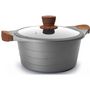 Lacor 27328 Le faitout Stilo Lacor 27328 est pratique et design pour mijoter et mitonner tous vos plats ! En fonte d'aluminium d'une grande robustesse et pour une répartition homogène de la chaleur. Fabriqué en une seule pièce. Revêtement antiadhésif avec finition pierre de haute qualité, sans PFOA, extrêmement résistant aux rayures. Poignées et bouton du couvercle avec revêtement soft touch pour une manipulation agréable et en toute sécurité. Couvercle en verre avec joint en silicone. Nettoyage facile : passe au lave-vaisselle.