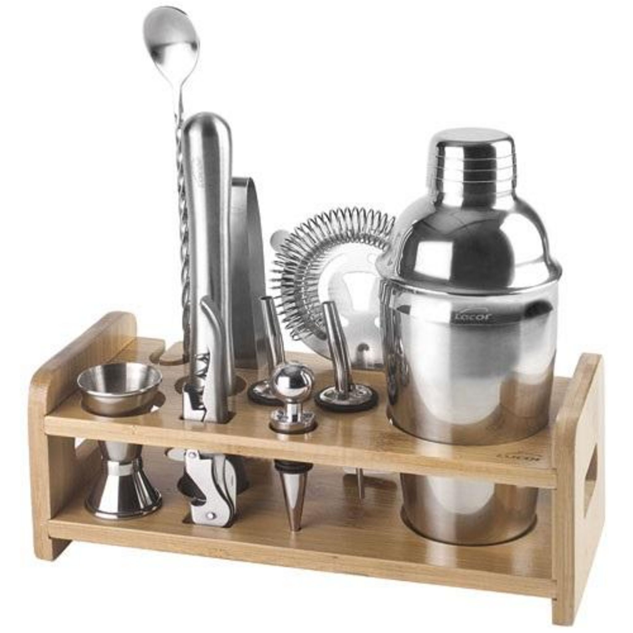 Lacor 62181 Set cocktail 10 pièces + support Lacor 62181. Un set indispensable pour les amateurs de cocktails et les apprentis barmaid ! Ce set permet d'avoir tous les accessoires à disposition afin de réaliser vos cocktails facilement. Il comprend 1 shaker, 1 cuillère à cocktail, 1 pilon, 1 passoir