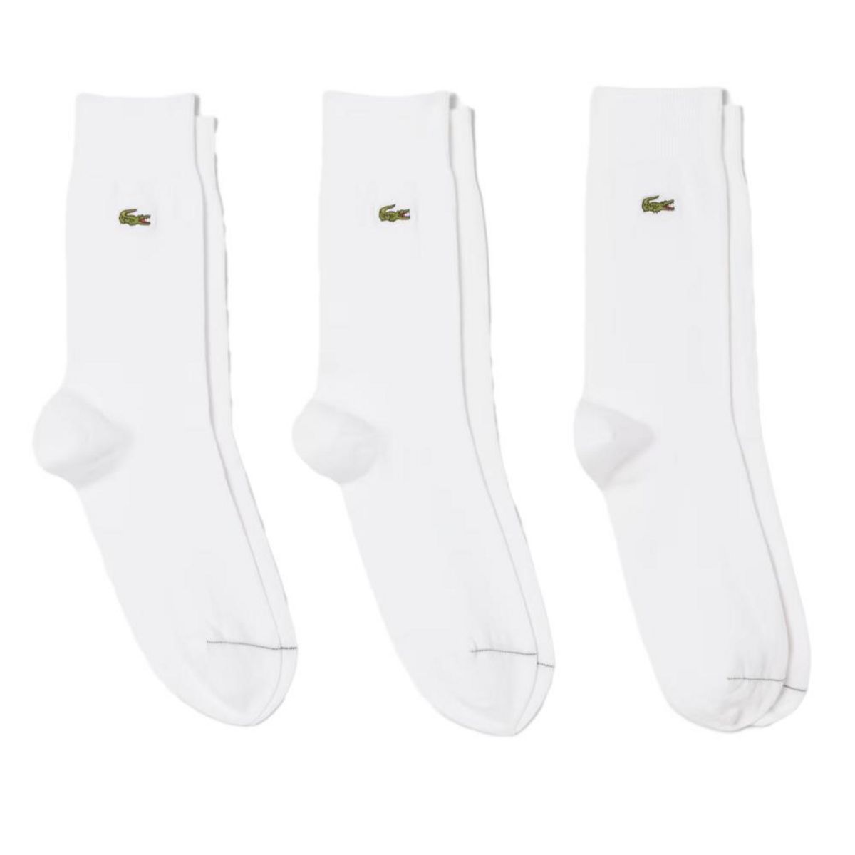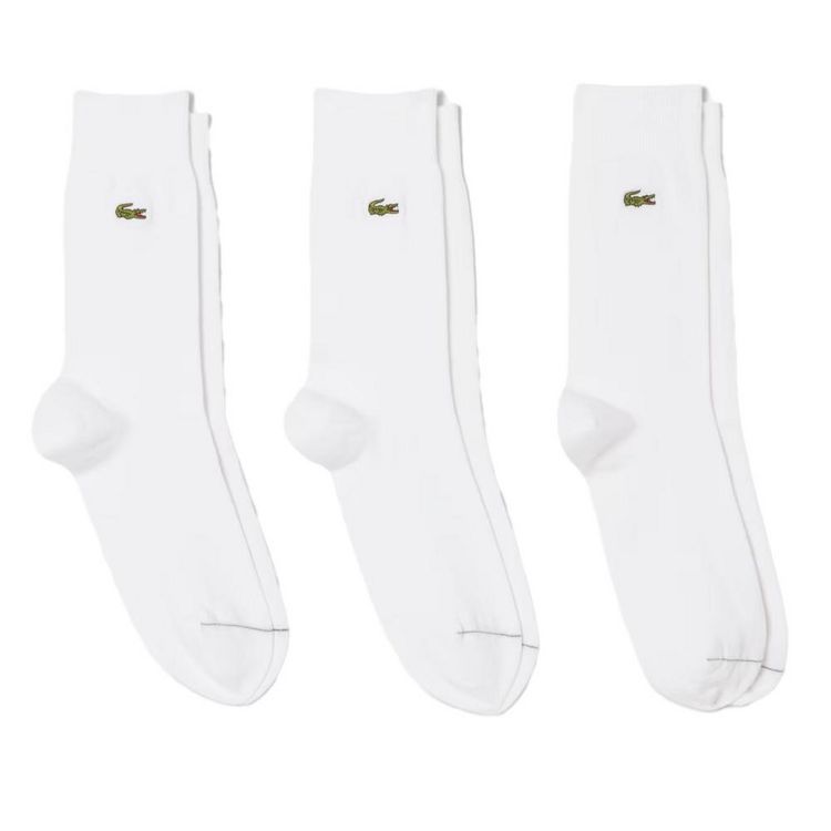 Optez pour ce lot de trois paires de chaussettes LacosteColoris : BlancLot de trois pairesCoton (79%), Polyamide (19%), Elasthanne (2%)Crocodile brodé sur le côtéLigne contrastée aux orteilsHauteur mi-molletJersey de coton issu de l'agriculture biologique