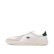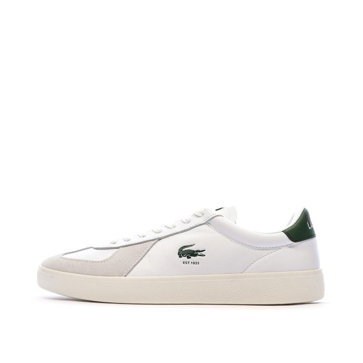 Craquez pour les baskets homme Lacoste !- Coloris : Blanc- Fermeture à lacets- Semelle en caoutchouc- Logo vert- Tige en cuir