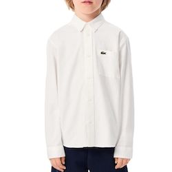 Optez pour cette chemise Lacoste à prix bas !- Coloris : Blanc- Manches longues- Col chemise- Composition : 96% coton, 4% élasthanne- Popeline stretch de coton- Crocodile brodé cousu sur la poitrine- Boutons en nacre véritable- Col français avec baleines- Slim fit, coupe ajustée
