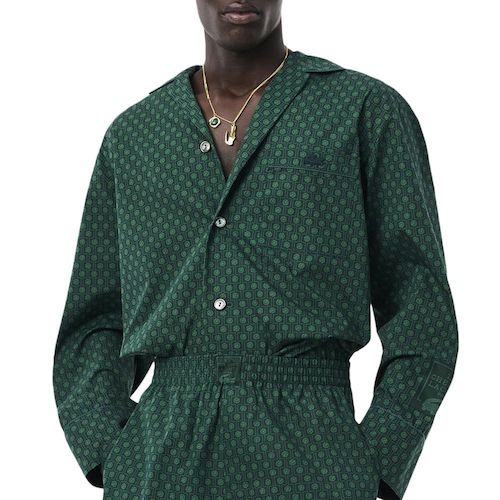 Optez pour cette chemise Lacoste à prix bas !- Coloris : Vert- Col chemise- Manches longues- Composition : 100% polyester- Chemise pyjama imprimée- Popeline de coton- Imprimé balle de tennis sur tout le corps- Bordure contrastée sur le col, la poche poitrine et les poignets- Etiquette rétro La Chem