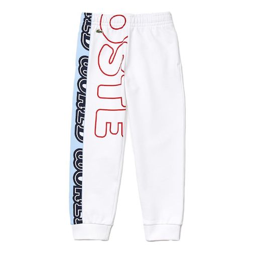 Optez pour ce jogging de la marque LacosteColoris : BlancCeinture élastiquée et poches latéralesRelaxed fit : Coupe décontractéeMarquages Lacoste jambe droiteCrocodile vert brodé sous la ceintureComposition : 100% coton