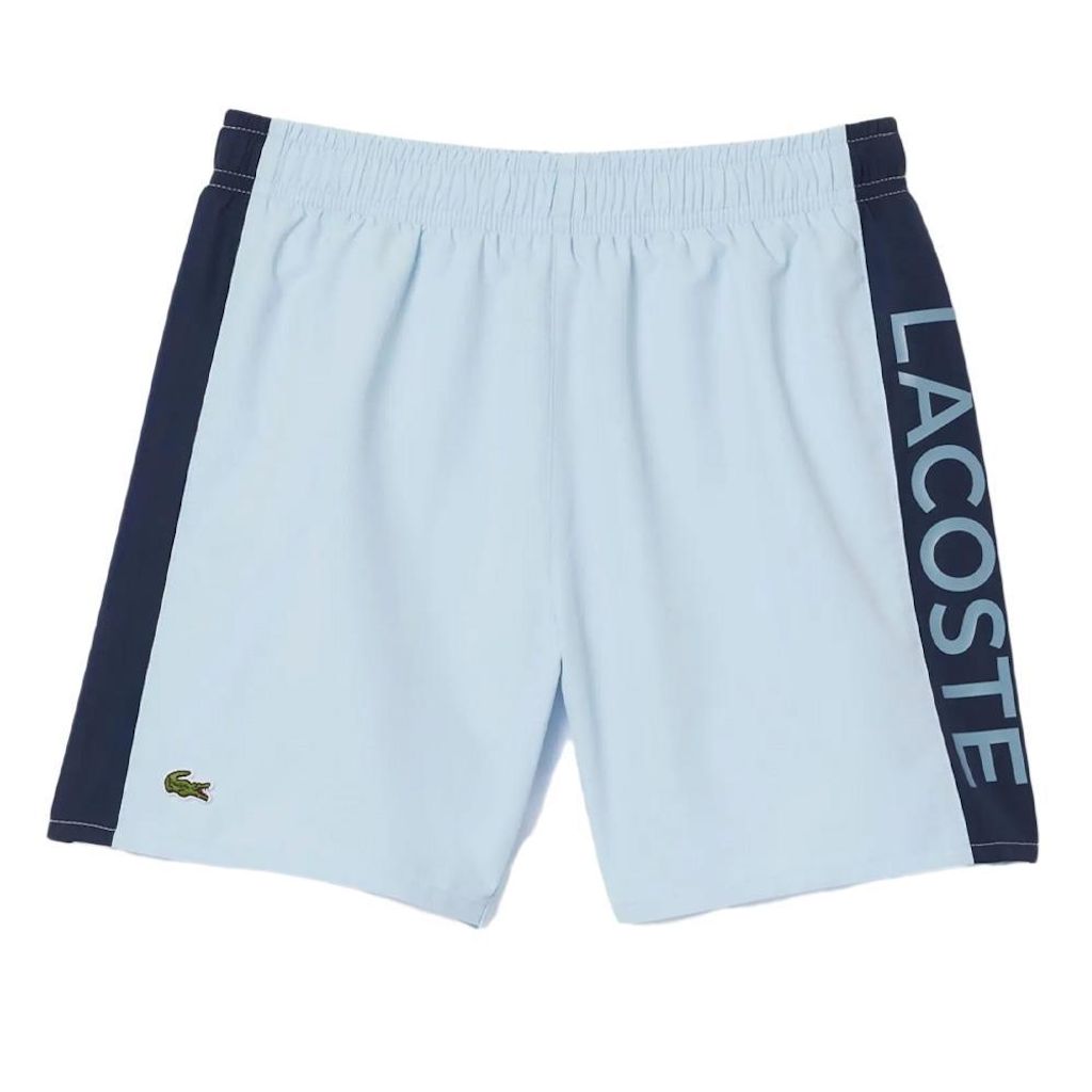 Optez pour ce maillot de bain Lacoste à prix bas !Coloris : BleuTaffetas léger et à séchage rapideLogo Lacoste sur le côtéTaille élastique avec cordon de serrage contrastéDoublure en mailleCrocodile brodé recyclé à l'avantComposition : 100 % polyester