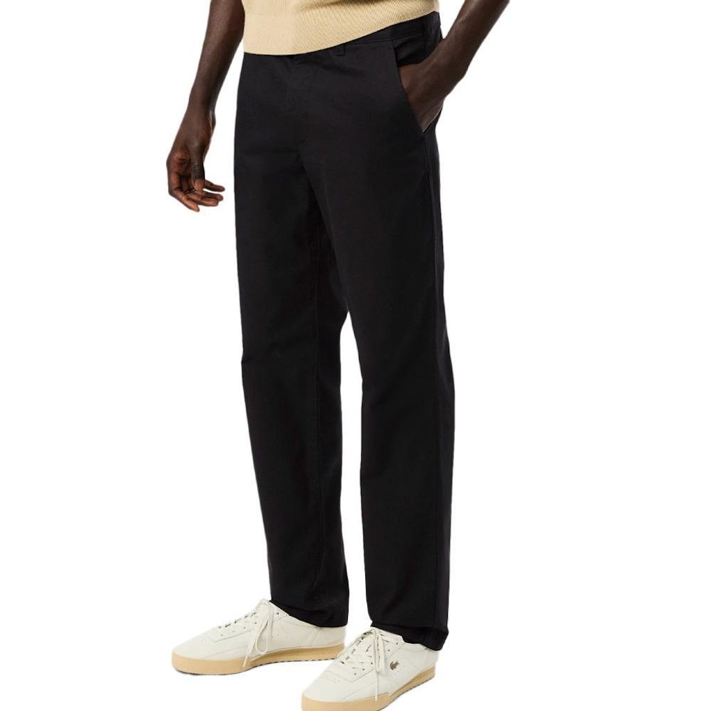Optez pour ce pantalon Lacoste à prix bas!Coloris : NoirCoupe chinoComposition : 100% cotonGabardine de coton stretch issu de l'agriculture biologiqueRegular fit, coupe droiteDisponible en longueurs 32 et 34, ouverture de jambe 20cmDeux poches italiennes et poche ticket à l'avant, deux poches passep