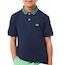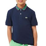 Craquez pour le polo de la marque LACOSTE !Coloris : Marine petit piqué de cotonCol à rayures côtelées contrastéesBoutons imitation nacreCrocodile brodé cousu sur la poitrineComposition : Coton (100%)