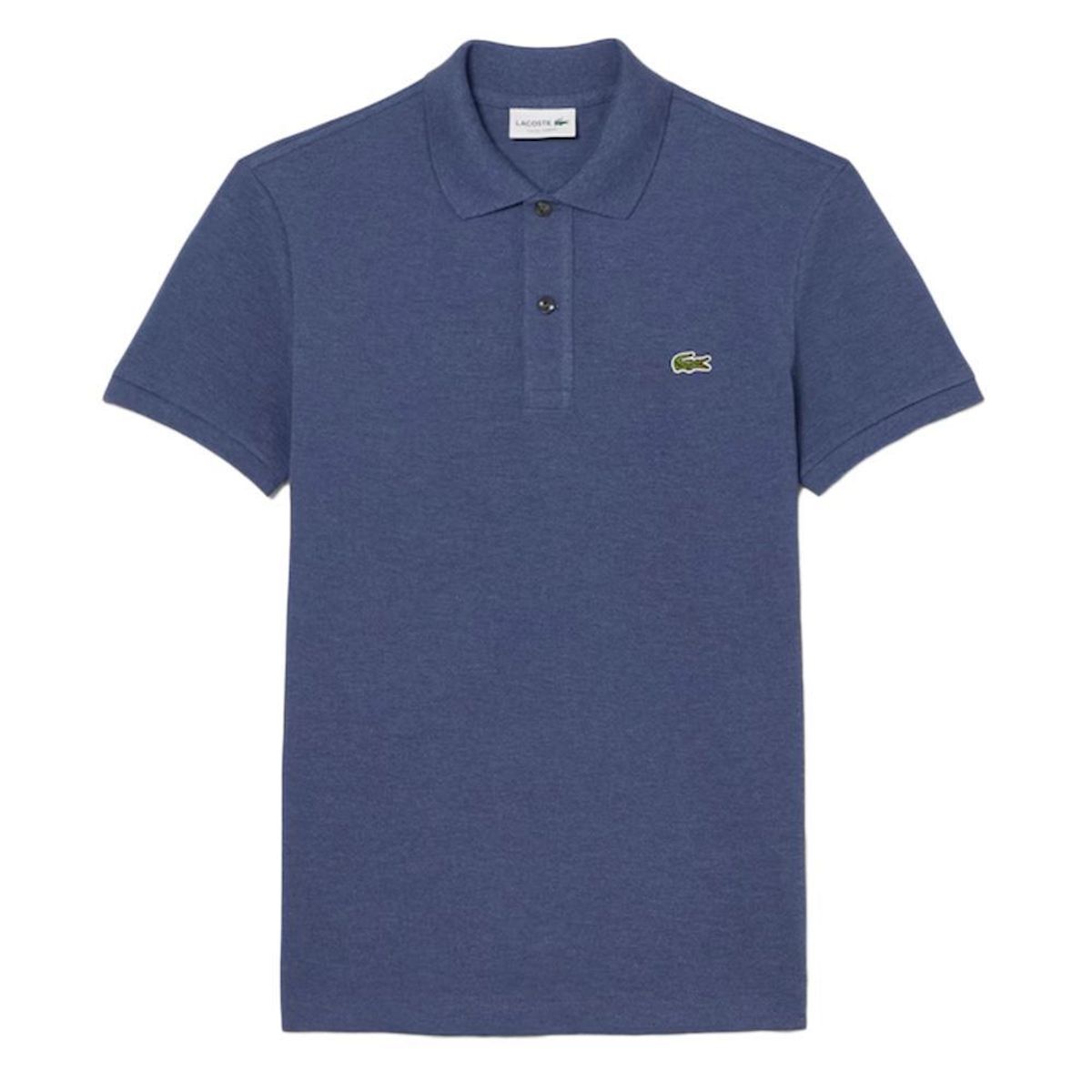 Craquez pour le polo de la marque LACOSTE à prix bas !Coloris : Bleu Col polo 2 boutonsLogo Lacoste brodé sur la poitrineManches courtesComposition : 100% Coton