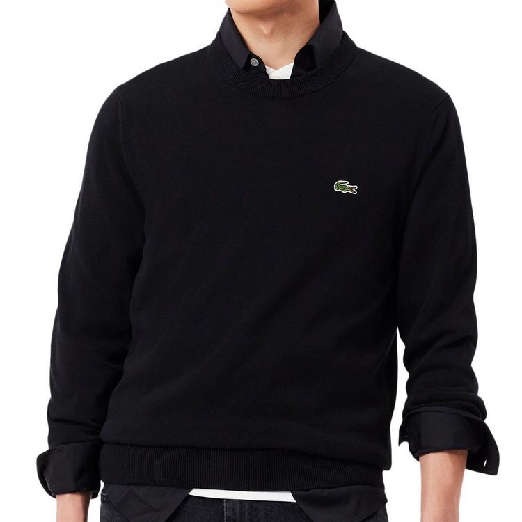 Optez pour ce pull Lacoste Coloris : NoirManches longuesComposition : 100% cotonCrocodile brodé cousu sur la poitrineLigne contrastante au poignet droitFinitions côtelées à la taille et aux poignetsRegular fit, aisance naturelle au corpsJersey de coton issu de l'agriculture biologique