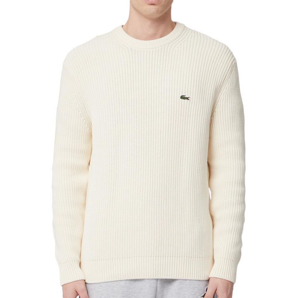 Optez pour le pull de la marque LACOSTE à prix bas !Coloris : Blanc Classique fit, coupe confortable :Col rondCrocodile sur la poitrineComposition : Coton (68%), Polyamide (32%)