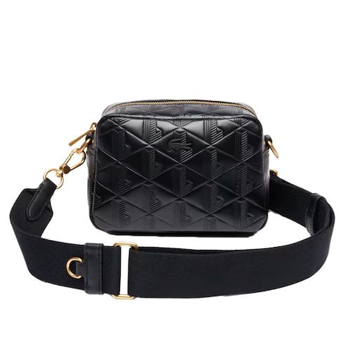 Optez pour le sac bandoulière de la marque LACOSTE !Coloris : Noir Dimensions : L 17 x H 11 x P 8 cmExtérieur en cuir embossé monogrammeBandoulière ajustable entre 110 et 180 cm1 poche plate intérieureAnneau d'accroche à l'intérieurExterieur: Cuir de vachette (100%)