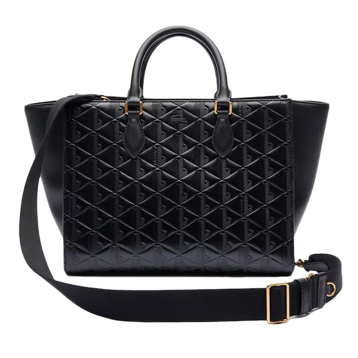 Sac cabas femme de la marque Lacoste !Coloris : NoirTige en cuirDimensions : L 31 x H 24 x P 16 cm1 poche zippée intérieureBandoulière ajustable2 anses