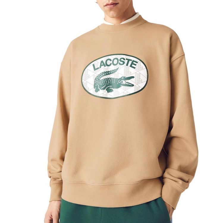 Optez pour le sweat de la marque LACOSTE à prix bas !- Coloris : Beige- Loose fit, coupe et manches amples- Col rond- Crocodile contrasté sur imprimé- Crocodile brodé à l'arrière- Molleton non gratté de coton- Composition : 100% Coton