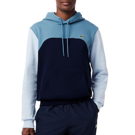 Sweat homme de la marque Lacoste !- Manches longues- Capuche- 1 poche kangourou- Coloris : Bleu- Logo brodé- Composition : 100% coton
