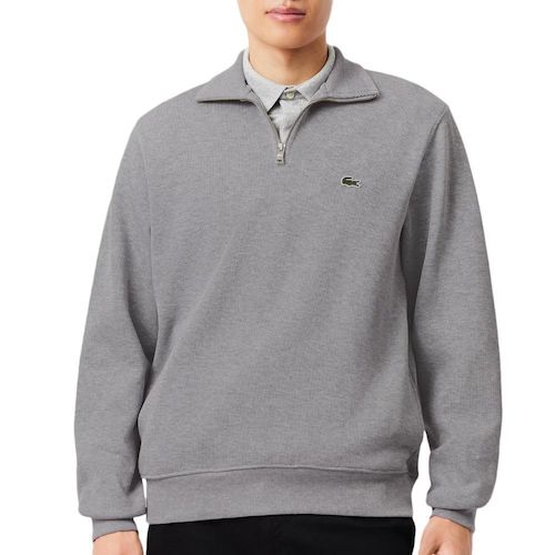 Optez pour ce sweat de la marque LACOSTE ! Coloris : GrisInterlock de coton côteléClassic fit, aisance naturelle au corpsCol montant zippéMotif chevron en jacquard à l'intérieur du colCrocodile brodé cousu sur la poitrineCoton (100%)