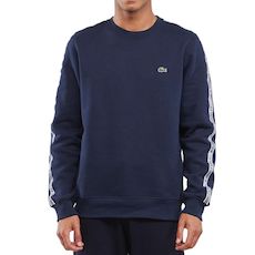 Sweat homme de la marque Lacoste !- Manches longues- Col rond- Coloris : Marine- Crocodile brodé- Imprimé sur les manches- Composition : 95% coton, 5% élasthanne