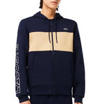 Optez pour le sweat homme de la marque Lacoste !Manches longuesCapucheInscription sur la mancheColoris : Marine/BeigeFermeture à zip2 pochesLogo brodéComposition : 100% coton