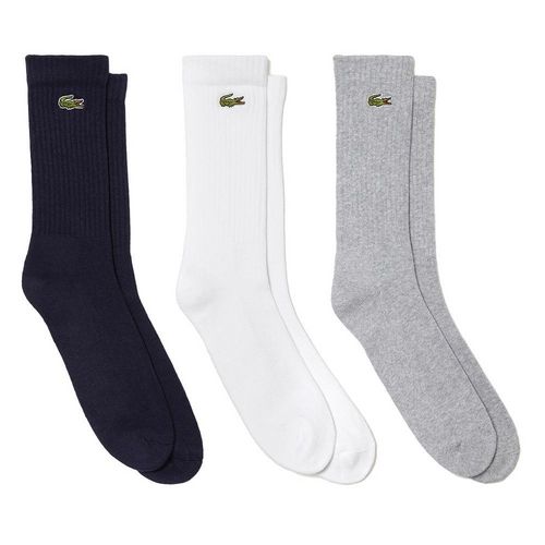 Optez pour ces paires de chaussettes LacosteColoris : Blanc/Gris/NoirComposition : 87% coton, 12% polyamide, 1% élasthanneLot de 3 paires