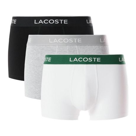 Lacoste développe des sous-vêtements qui mêlent héritage sport et expertise confortColoris : Gris/Blanc/NoirJersey de coton stretch et élasthanneCoupe assurant confort et maintien en toutes circonstancesCeinture élastiquée marquée LacosteLe placement du wording Lacoste peut différer d'un modèle à l'