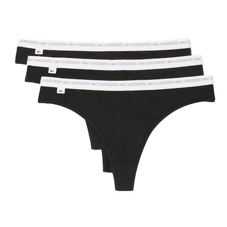 Craquez pour les 3 Strings de la marque LACOSTE !Coloris : NoirCoton recyclé issu de chutes de fabricationAisance au niveau de la tailleCeintures contrastées sigléesCrocodile tissé sur le devantLes sous-vêtements ne sont ni repris, ni échangés, ni remboursésCoton (95%), Elasthanne (5%)