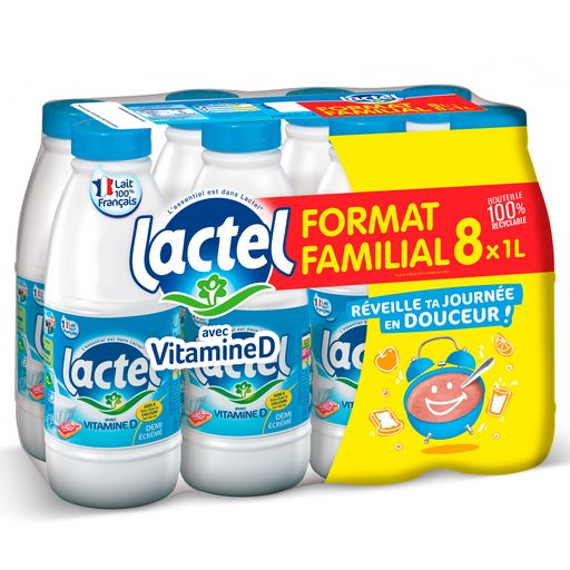Le lait Lactel stérilisé UHT enrichi en vitamine D, est le lait de toute la famille qui participe à l’entretien de notre capital osseux, dans le cadre d'une alimentation équilibrée : la vitamine D contenue dans le lait LACTEL aide le calcium à bien se fixer sur les os, pour des os solides.