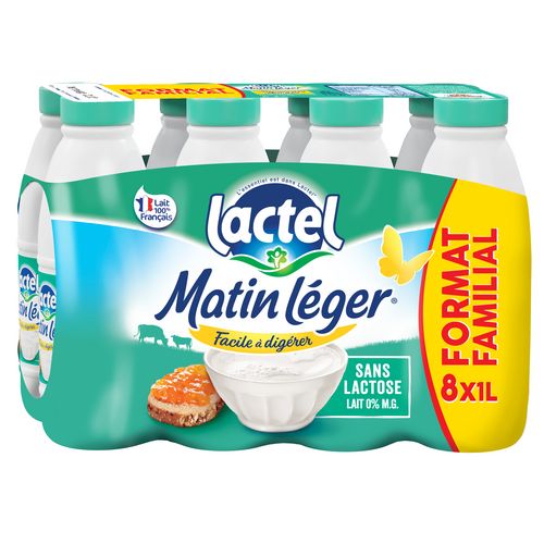 Sans lactose.Le lait Matin Léger est naturellement source de calcium. Il vous apporte autant de calcium et de protéines que votre lait Lactel classique.