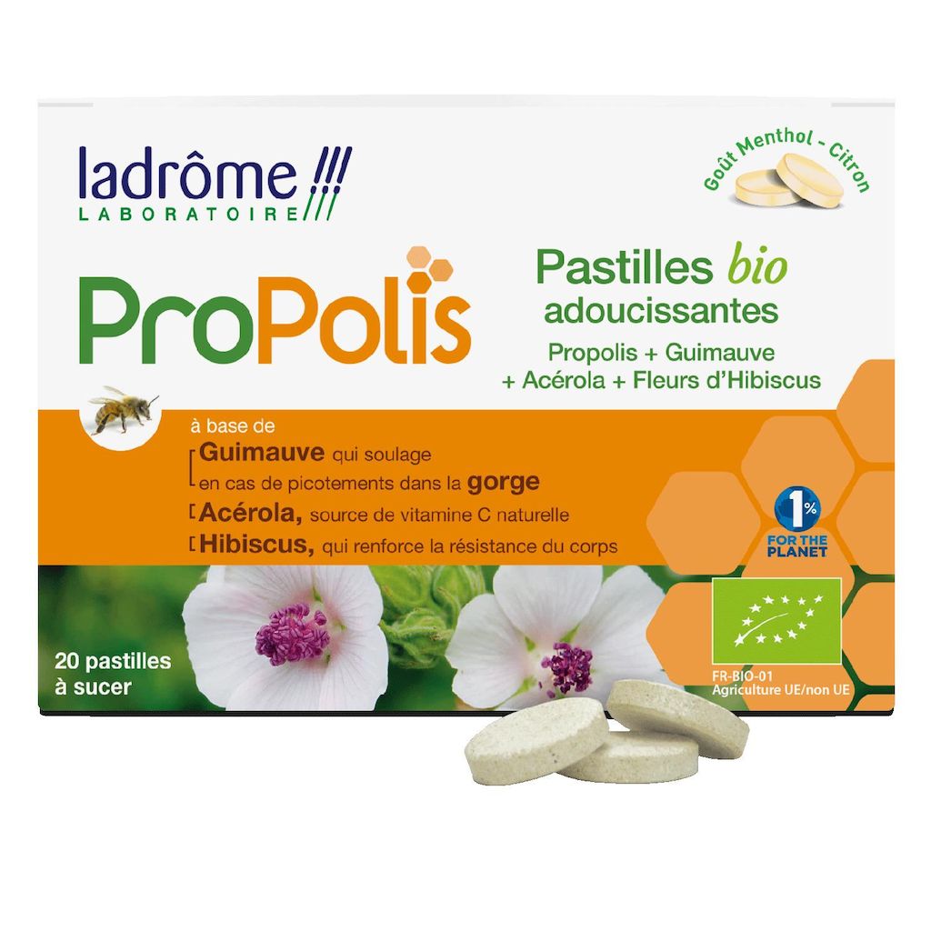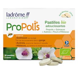 Pastilles à sucer adoucissantes bio au propolis guimauve acérola et fleurs d'hibiscus