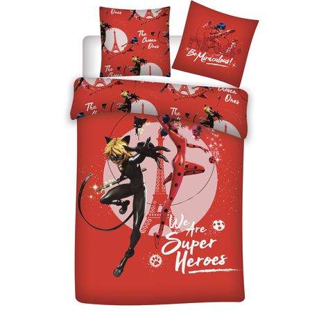 Parure housse de couette enfant en coton MIRACULOUS LADY BUG pour tous les fans de chat noir et Ladybug ! Parure en coton, absorbante et résistante dans le temps.