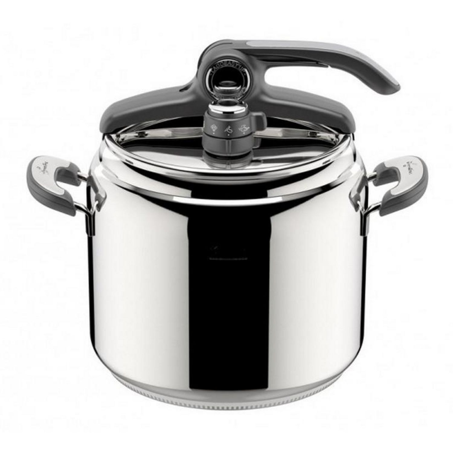 Lagostina 012019010709 Autocuiseur Novia Lagoeasy'Up Lagostina 012019010709 doté de la Technologie d'ouverture innovante et brevetée Lagoeasy'up. Manipulation sécurisée grâce à la double poignée fixe évitant toute ouverture accidentelle de la poignée mobile. Deux programmes de cuisson : position 1 pour les légumes et aliments délicats, position 2 pour les viandes et surgelés. Anses en bakélite avec insert inox pour une prise en main confortable. Pour cuisiner des recettes variées et réussies, un panier vapeur, un gobelet mesureur Ecodose et un livret de 12 nouvelles recettes sont inclus : des accessoires indispensables pour réussir toutes vos cuissons : rissolée, mijotée ou vapeur. Manipulation et utilisation en toute sécurité : rigoureusement testé et certifié avec un système de sécurité en 6 points.