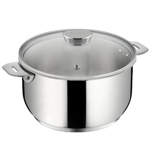 Lagostina 012138031214 Casserole sans poignée Salvaspazio+ Lagostina 012138031214 avec couvercle en verre. Une manière astucieuse d'atteindre l'excellence italienne ! La gamme Salvaspazio+ a été pensée pour allier élégance et praticité. Grâce à son design empilable et peu encombrant. elle se range facilement dans vos placards en économisant jusqu'à 50 % d'espace dans vos placards ou votre lave-vaisselle. Avec sa nouvelle poignée amovible 100 % sûre (poignée vendue séparément). facile à mettre en place et à enlever d'une seule main. vous pouvez cuisiner de la plaque de cuisson au four. En retirant la poignée en cours de cuisson. c'est l'assurance d'avoir une poignée toujours froide. Diffusion optimale de la chaleur grâce à sa base épaisse Lagotherm® en aluminium enserrée entre deux couches d'acier : la couche d'aluminium permet de répartir la chaleur de manière homogène sur l'ensemble du fond de l'ustensile. Conçue pour passer de la plaque de cuisson au four. puis à table. Salvaspazio+ permet de tirer le meilleur parti de votre cuisine et de maîtriser les meilleures recettes. Couvercle en verre cerclé d'inox et bouton inox avec trou d'évacuation de la vapeur : pratique pour surveiller la cuisson.