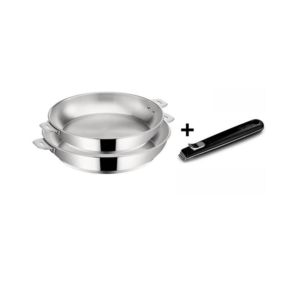 Lot de 2 poêles inox 24 et 28 cm + poignée - 012138600003