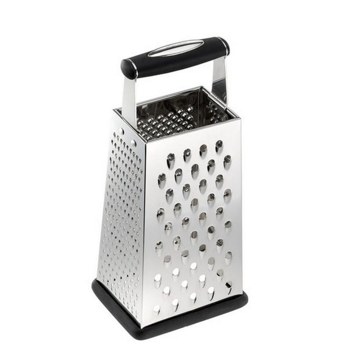 Lagostina 012335120100 Râpe 4 faces LAGOSTINA 012335120100. - Type : verticale.Couleur : Noir, Acier inoxydable.Matériel : Nylon, Acier inoxydable.Poignée(s) : Oui.Nombre de plans de travail : 4.Lavable au lave-vaisselle : Oui.
