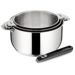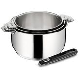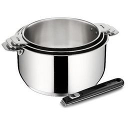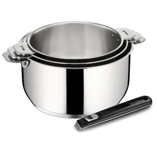 Lagostina 012132600004 Série de 3 casseroles + poignée Salvaspazio Lagostina 012132600004 en inox 18/10 durable et élégant. L'ingéniosité en un clic ! Cette gamme a été pensée pour vous faciliter la vie et la cuisson. Des poignées et des anses ingénieuses et robustes qui se montent et se démontent e