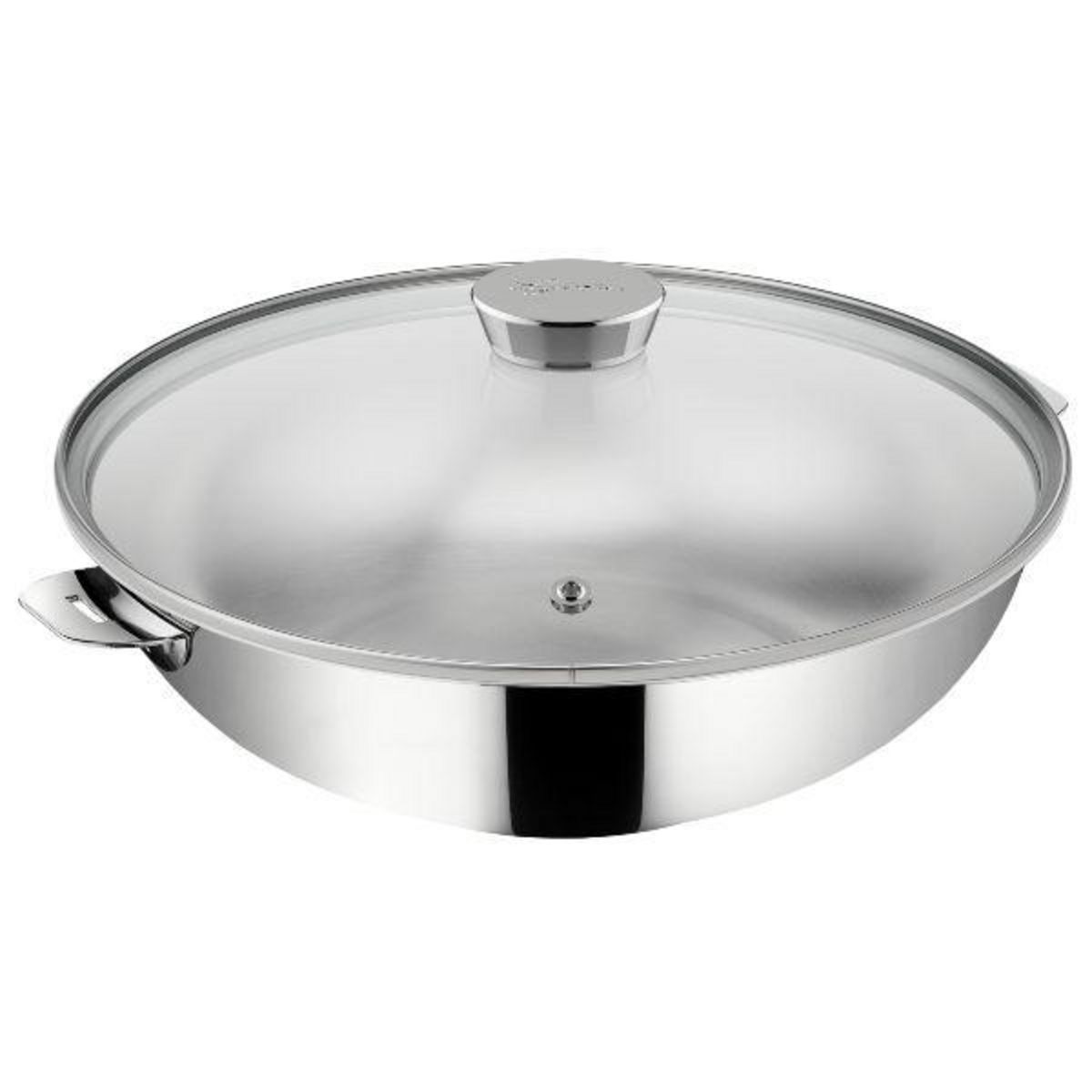 Lagostina 12138042026 Wok avec couvercle saltapasta salvaspazio+ 12138042026 de Lagostina : une manière astucieuse d'atteindre l'excellence italienne ! La gamme salvaspazio+ a été pensée pour allier élégance et praticité. Grâce à son design empilable et peu encombrant. Elle se range facilement dans vos placards en économisant jusqu'à 50 % d'espace dans vos placards ou votre lave-vaisselle - avec sa nouvelle poignée amovible 100 % sûre (poignée vendue séparément). Facile à mettre en place et à enlever d'une seule main. Vous pouvez cuisiner de la plaque de cuisson au four en retirant la poignée en cours de cuisson. C'est l'assurance d'avoir une poignée toujours froide. Diffusion optimale de la chaleur grâce à sa base épaisse lagotherm® en aluminium enserrée entre deux couches d'acier : la couche d'aluminium permet de répartir la chaleur de manière homogène sur l'ensemble du fond de l'ustensile. Conçue pour passer de la plaque de cuisson au four puis à table. Salvaspazio+ permet de tirer le meilleur parti de votre cuisine et de maîtriser les meilleures recettes. Couvercle en verre cerclé d'inox et bouton inox avec trou d'évacuation de la vapeur : pratique pour surveiller la cuisson.