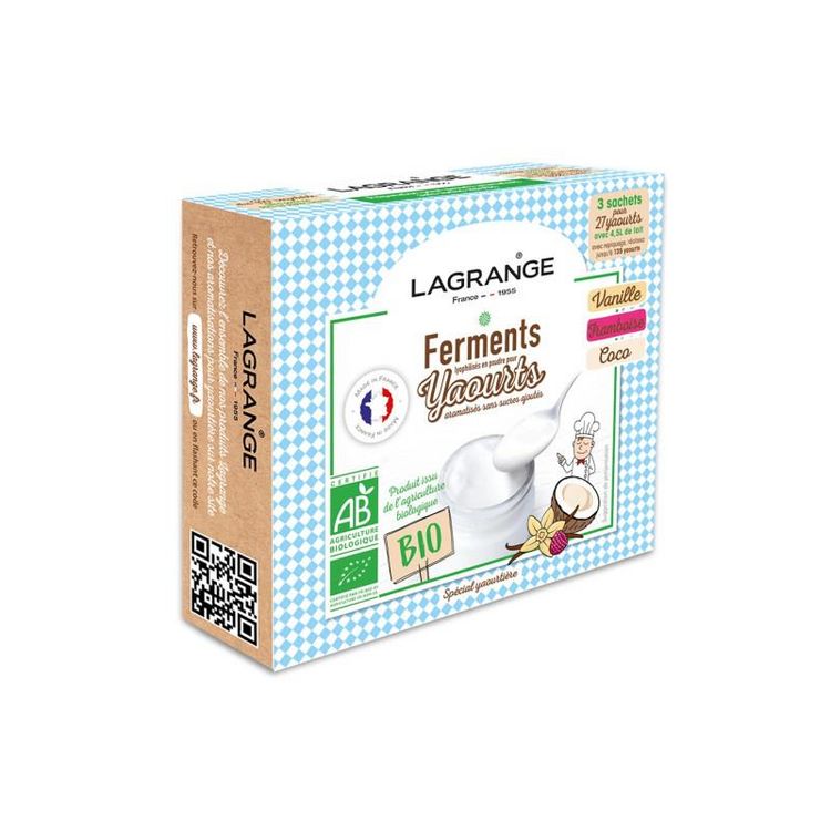 Découvrez les ferments Lagrange spécialement conçus pour préparer des yaourts maison aromatisés sans sucres ajoutés. Idéal pour les amateurs de desserts sains, ce kit contient des arômes naturels permettant de varier les plaisirs tout en conservant une texture onctueuse. Compatible avec toutes les yaourtières, il simplifie la préparation de yaourts personnalisés selon vos envies.