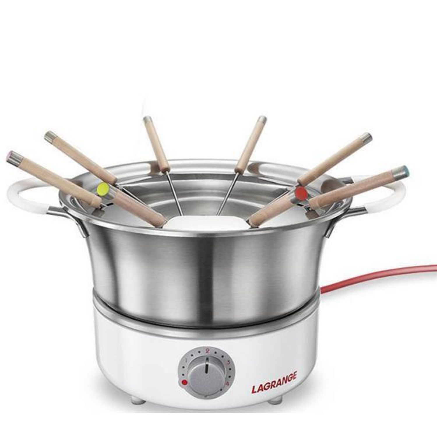 Lagrange 349301 La fondue Festiv' sera appréciée du plus grand nombre grâce à sa forme conviviale, son design moderne et ses manches de fourchettes en bois de hêtre.Grâce à son thermostat réglable permettant d'ajuster la température de manière précise, il sera possible de réaliser de multiples recet