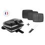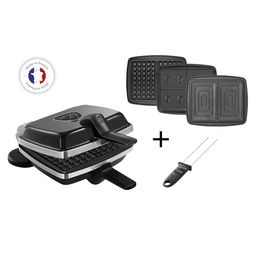 Accessoire(s) inclus : 1 plaque gaufres 155 x 100 mm, 1 plaque pour 4 gaufrettes 100 x 77 mm, 2 croque-monsieur 150 x 95 mm.