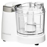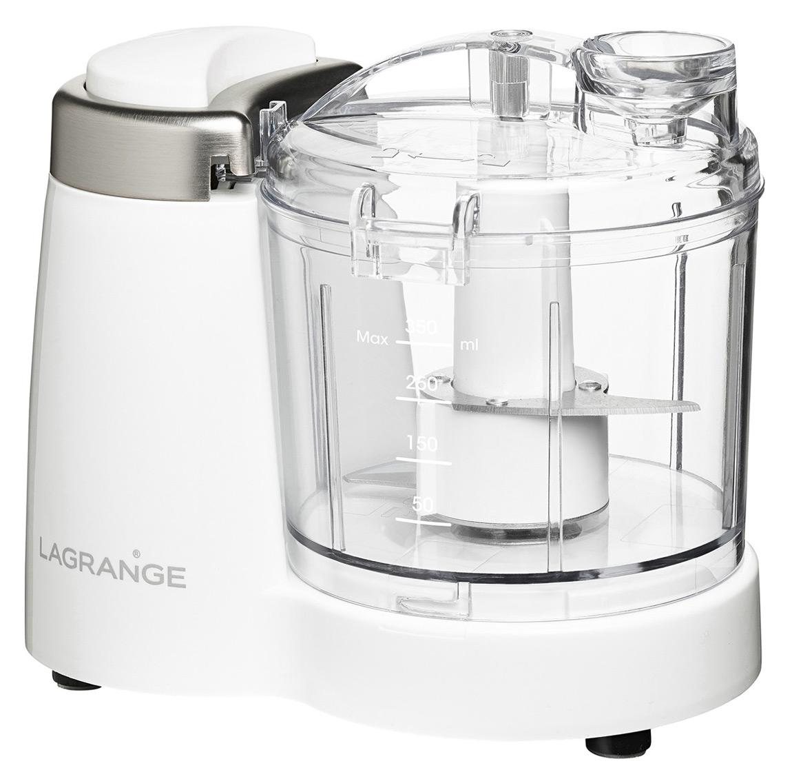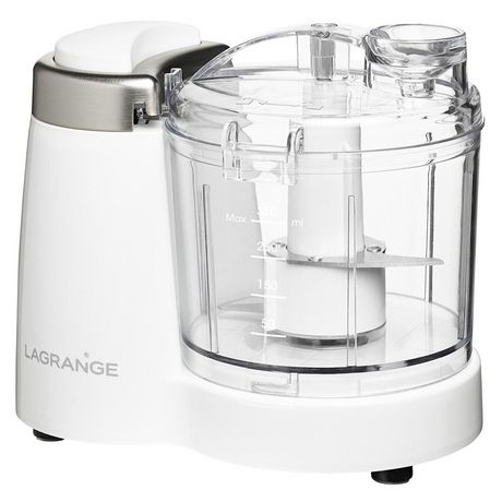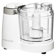 Lagrange 629001 Mini-hachoir Lagrange 629001 pour hacher, mixer, émincer vos ingredients et préparer vos sauces maison.Mini hachoir électrique polyvalentIdéal comme petit hachoir à portée de main, le mini mixeur est polyvalent : mixez viandes, oignons, noix, ails, herbes et sauces (mayonnaise, pesto, houmous...).C?est également le petit mixeur idéal pour réaliser de bonnes purées et compotes pour bébé grâce à sa capacité de 350ml. Un petit hachoir électrique du quotidien.Résistant et performant, le mini hachoir n?aura aucune difficulté pour broyer les noix, noisettes, amandes et de la viande crue.Mini mixeur ergonomiqueSimple d?utilisation, il suffit de presser sur le grand bouton pression ergonomique avec son pelliculage doux soft touch pour mettre en fonctionnement le mini hachoir.Sa taille compacte assure un rangement facile et se place aisément sur le plan de travail de votre cuisine. Le nettoyage est très simple car le bol, les lames et le couvercle du mini hachoir sont amovibles.- Compact et facile d'utilisation : un seul bouton pression et une capacité de 350ml pour des portions adaptées à vos besoins.- Pratique : goulotte à huile pour agrémenter vos sauces sans avoir à ouvrir l?appareil.- Facile à nettoyer : bol, couvercle et couteaux amovibles.- Accessoire inclus : petite spatule pour racler le fond et les bords du récipient.
